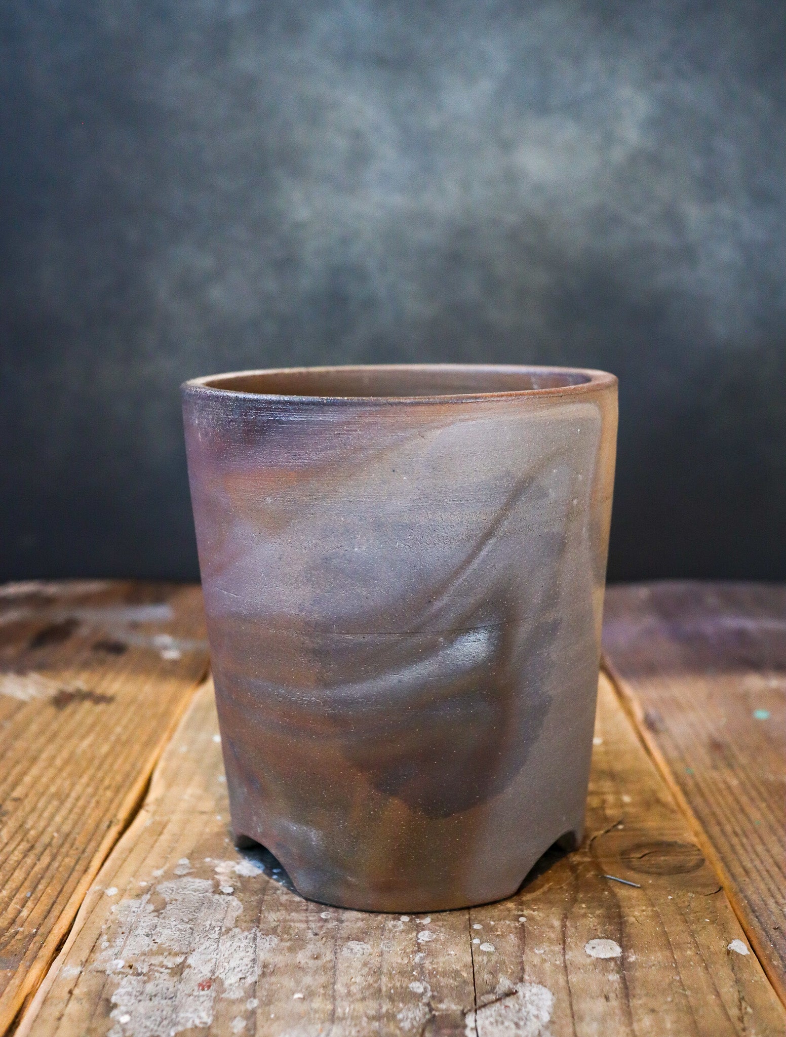 それをDELTA PLANTS定番の目の細かい丹波土で作り、登り窯で焼成してもらうことで炎を模したような窯変が映える、シンプルだけど個性を持つ鉢に仕上がりました。