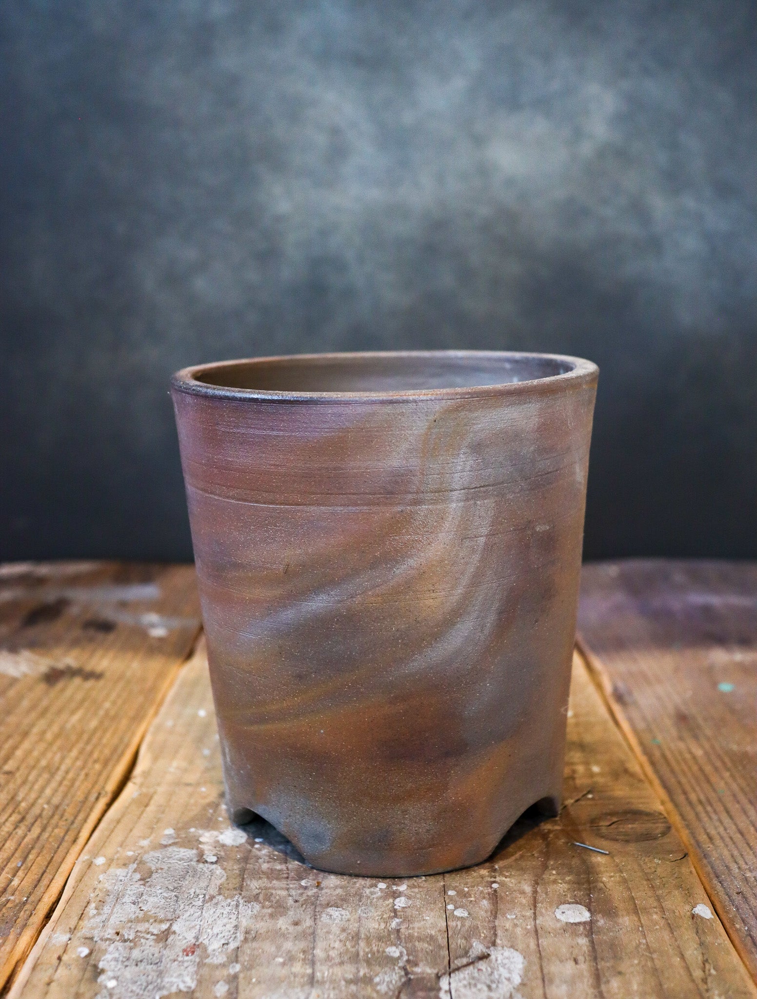 それをDELTA PLANTS定番の目の細かい丹波土で作り、登り窯で焼成してもらうことで炎を模したような窯変が映える、シンプルだけど個性を持つ鉢に仕上がりました。
