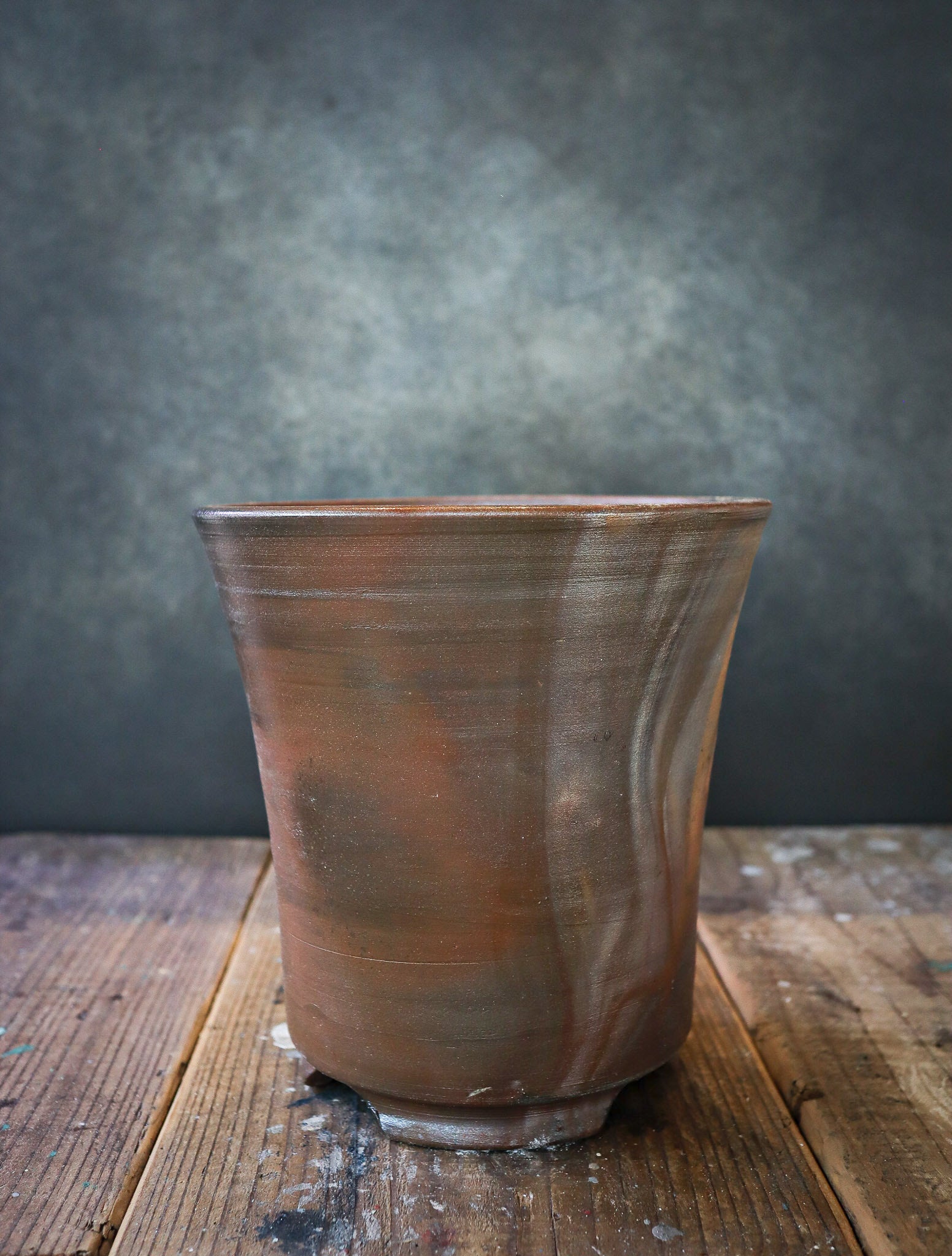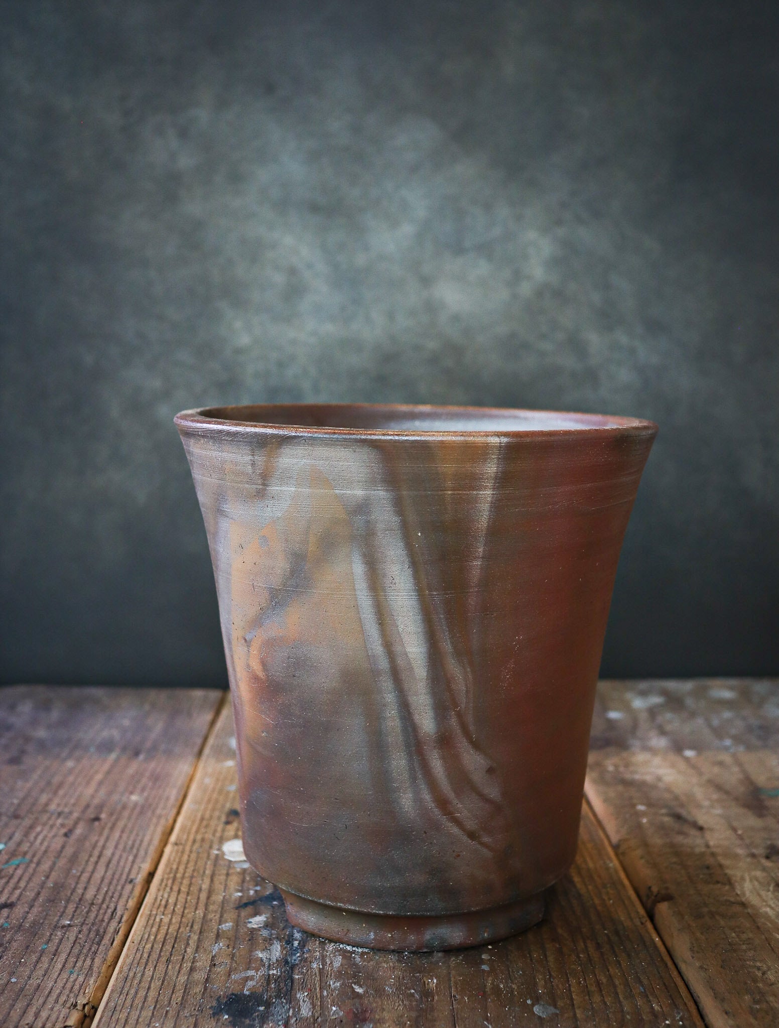 丹波土で作られた滑らかな鉢肌が、登り窯の火に当てられて艶を放つことで焔の紋様がより一層はっきりと映し出し、ワイルドな中に上品さを揃えた特別な鉢に仕上がっています。