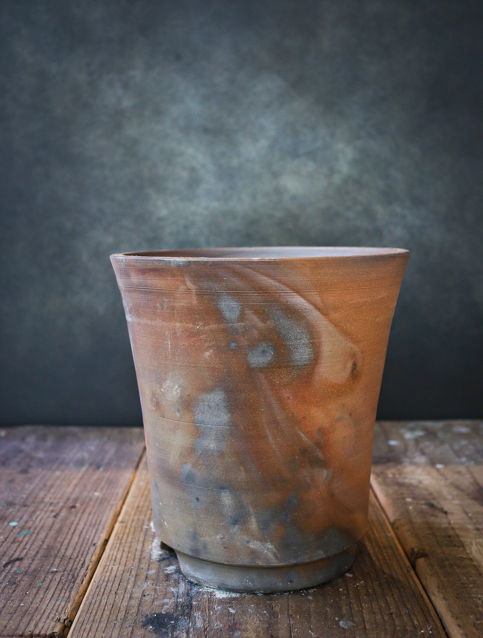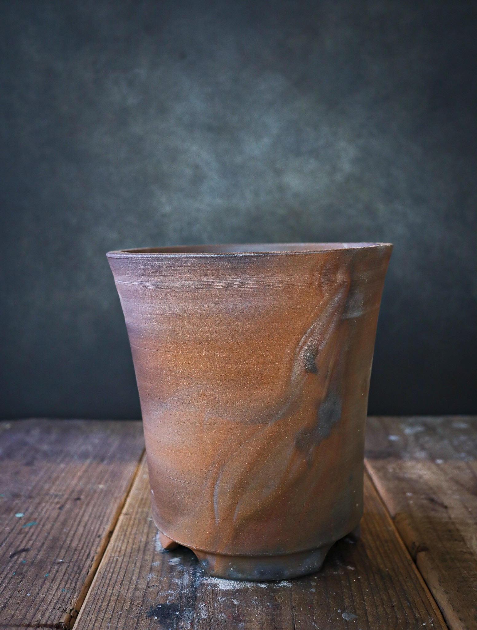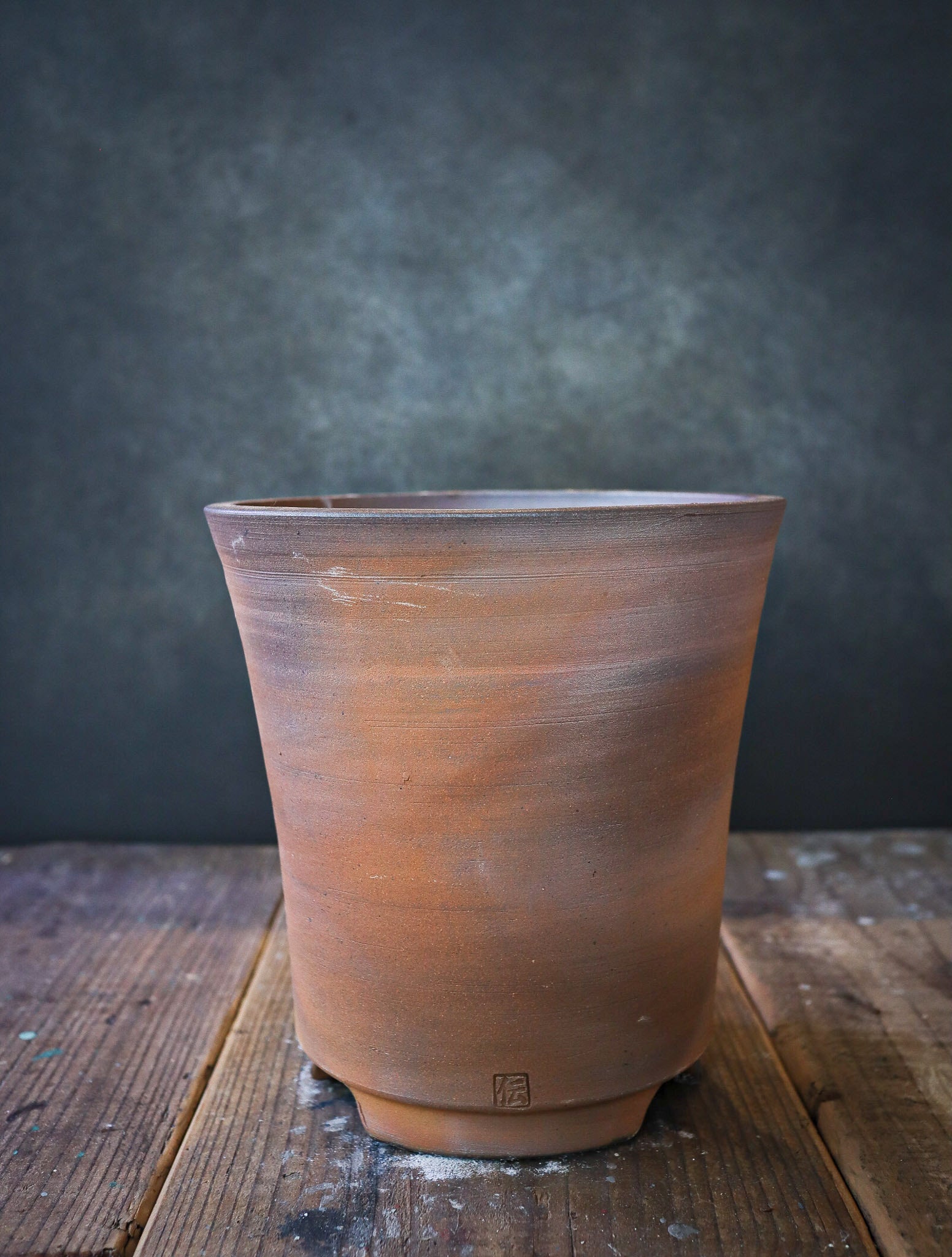 丹波土で作られた滑らかな鉢肌が、登り窯の火に当てられて艶を放つことで焔の紋様がより一層はっきりと映し出し、ワイルドな中に上品さを揃えた特別な鉢に仕上がっています。