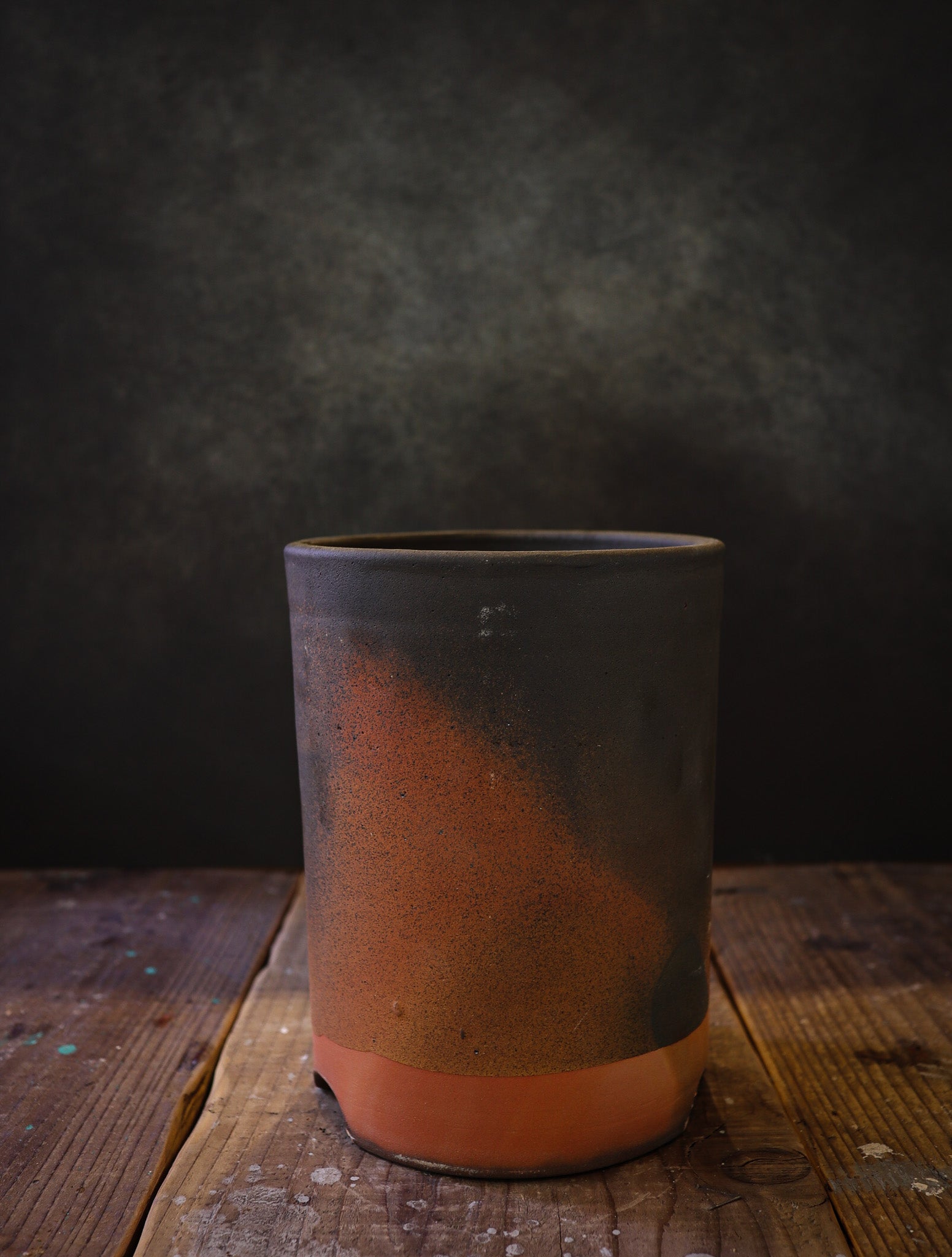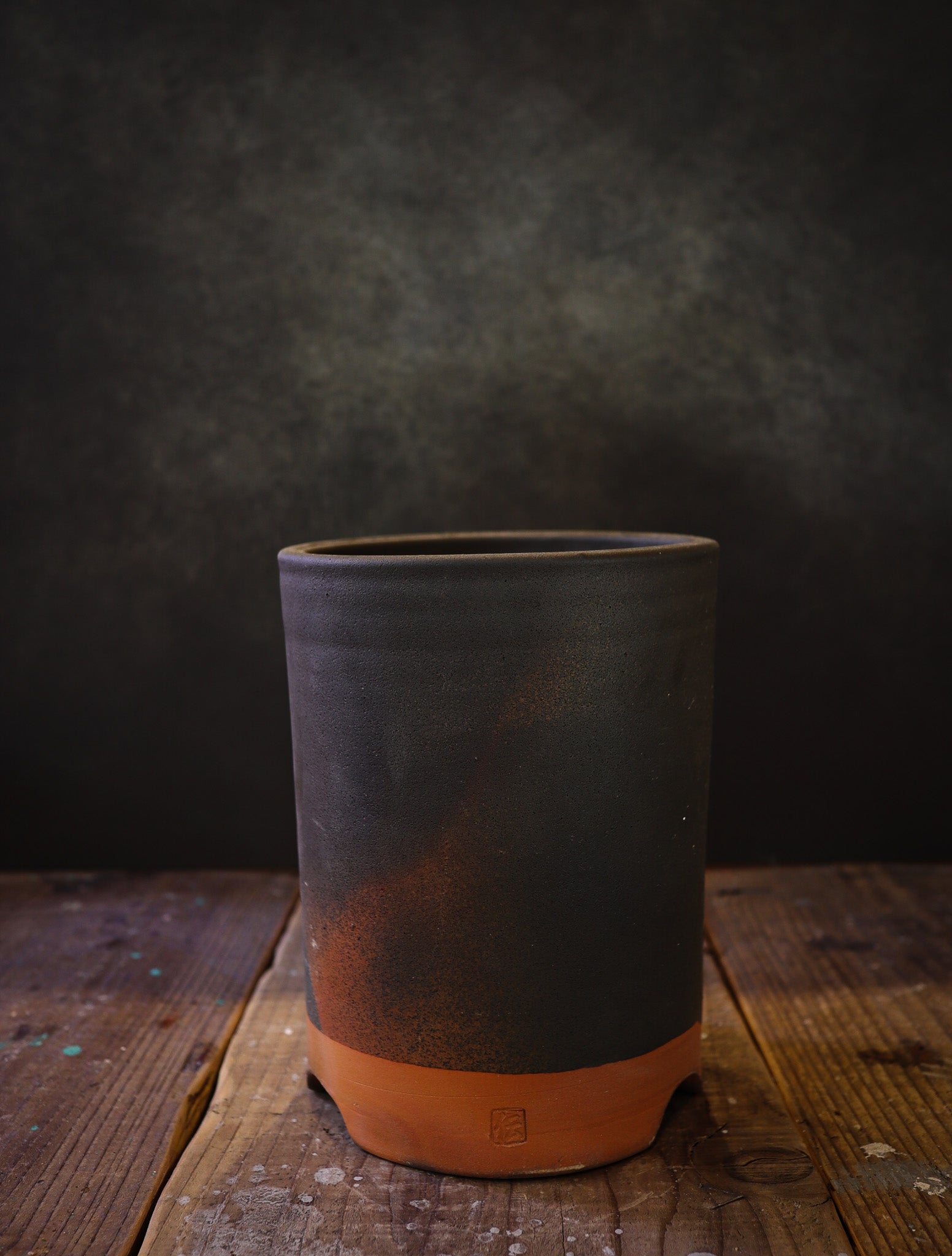 1320℃で焼かれた土と黒釉が融合したような風合いの筒鉢です。