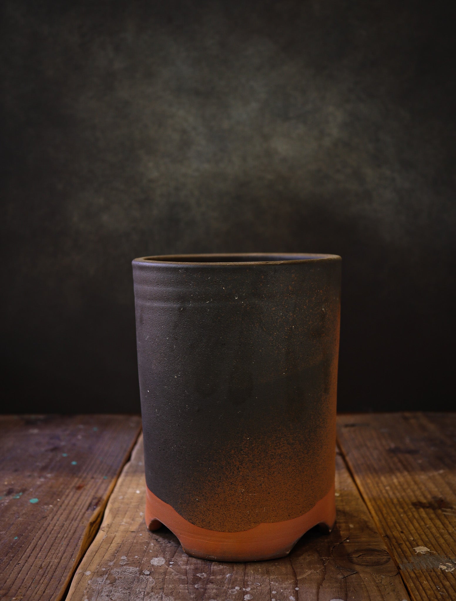 伝市鉢 穴窯焼 01 筒型4.5号 黒釉