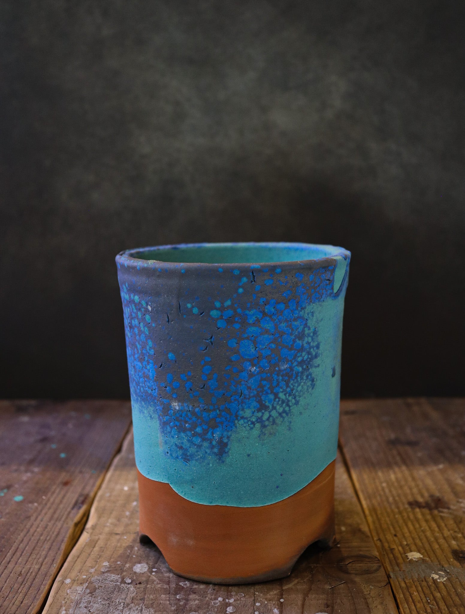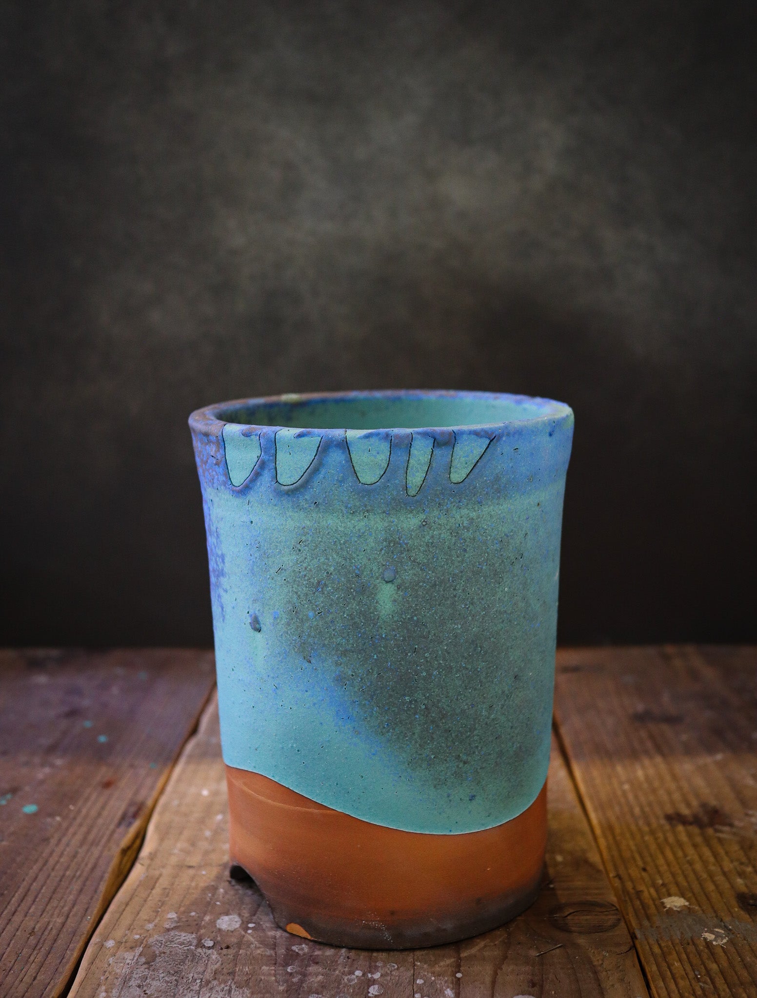 伝市鉢 穴窯焼 02 筒型4.5号 青銅