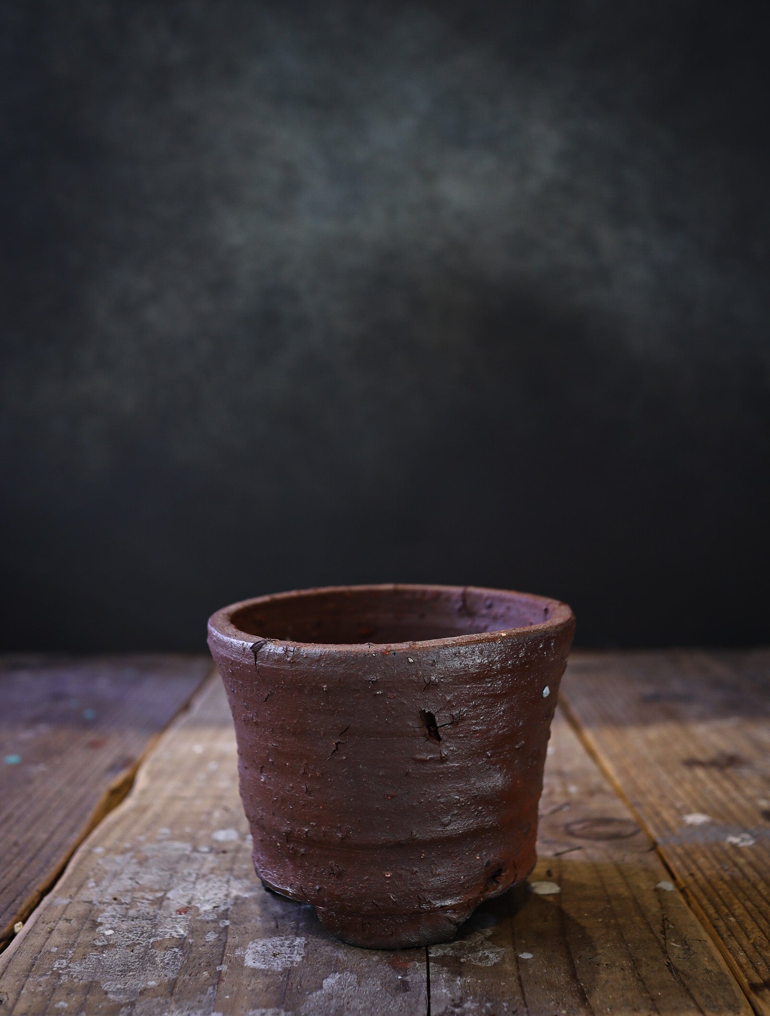 混ぜ込まれた小石等の不純物が鉢肌に様々な表情を施し、唯一無二の存在感を放っています。