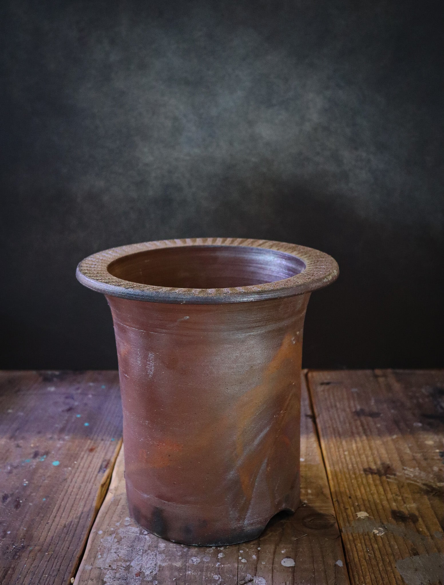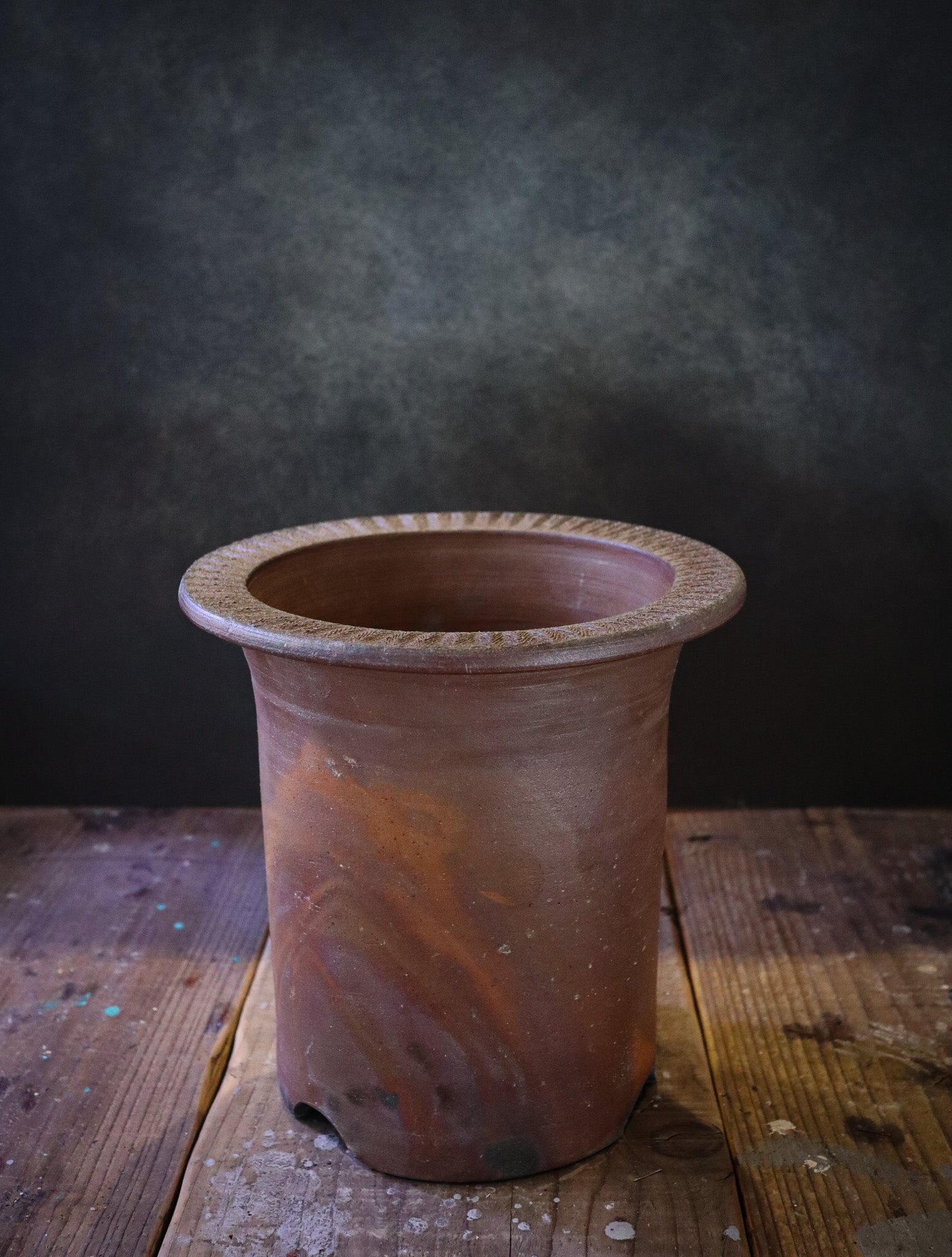 伝統的な形の鉢を穴窯によって再度焼き締めた作品です。