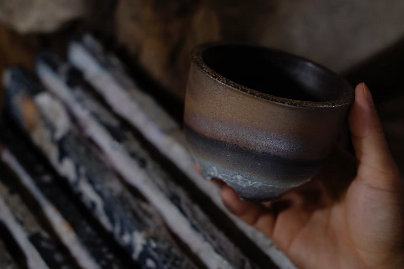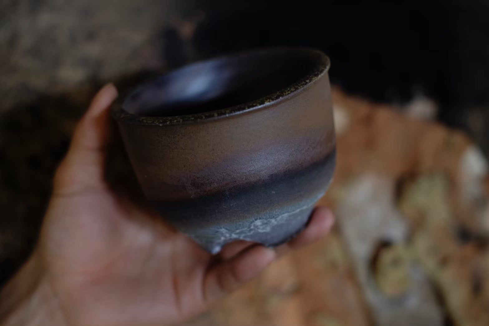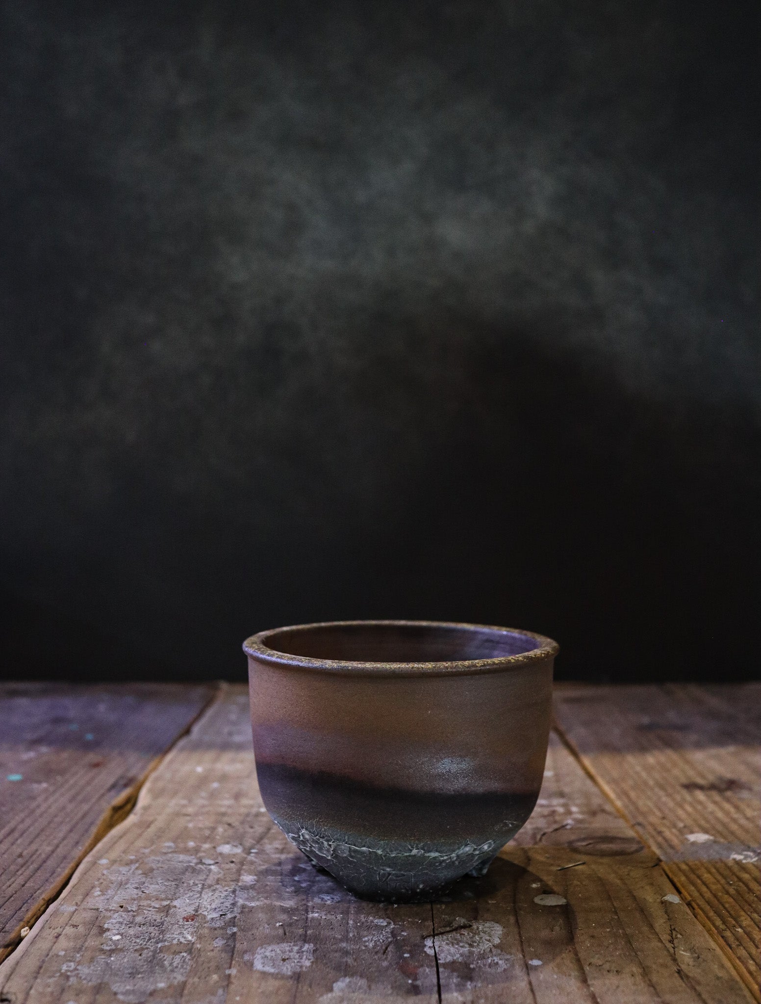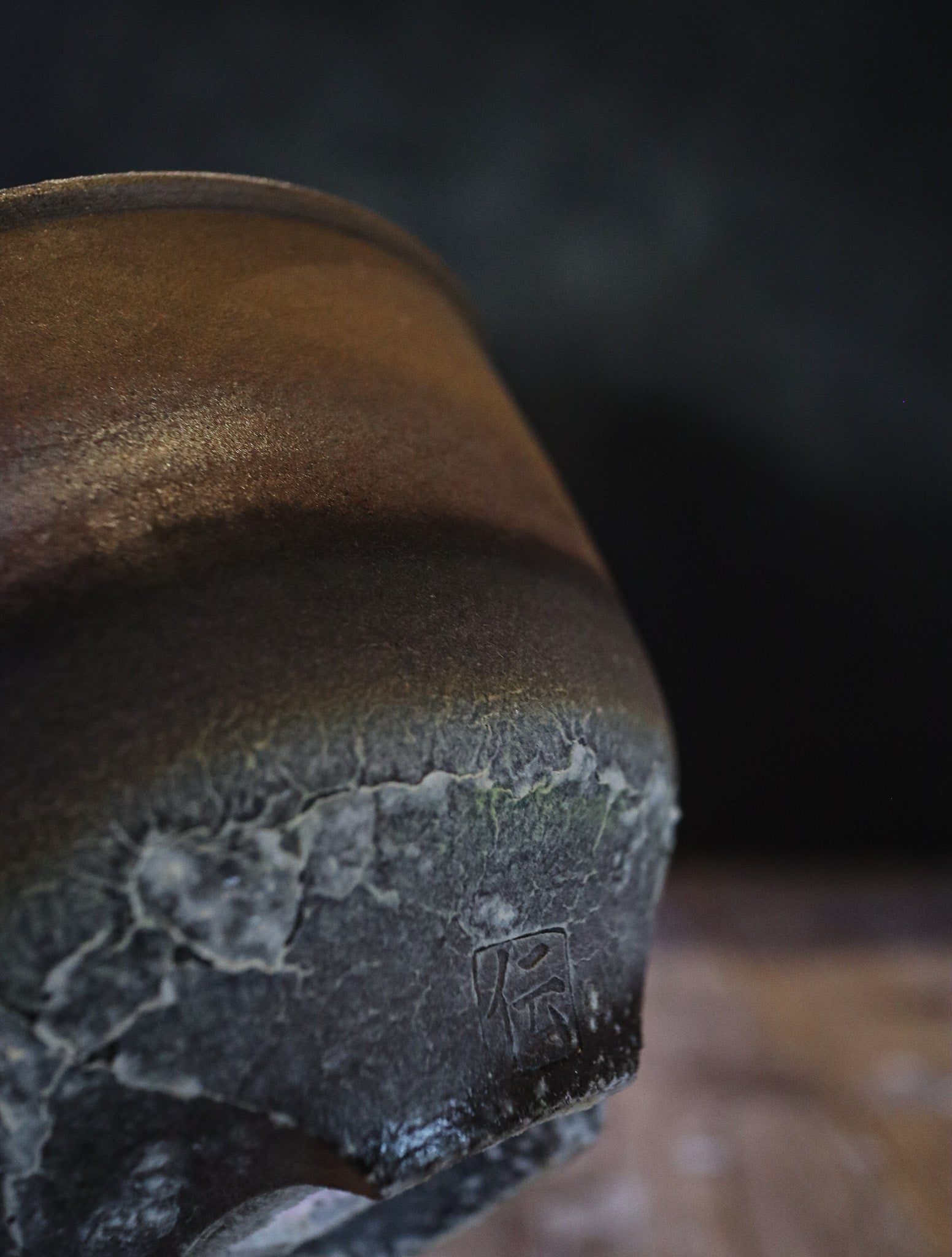 焼成時に米糠を使うことで美しい炎のグラデーションが施された作品。