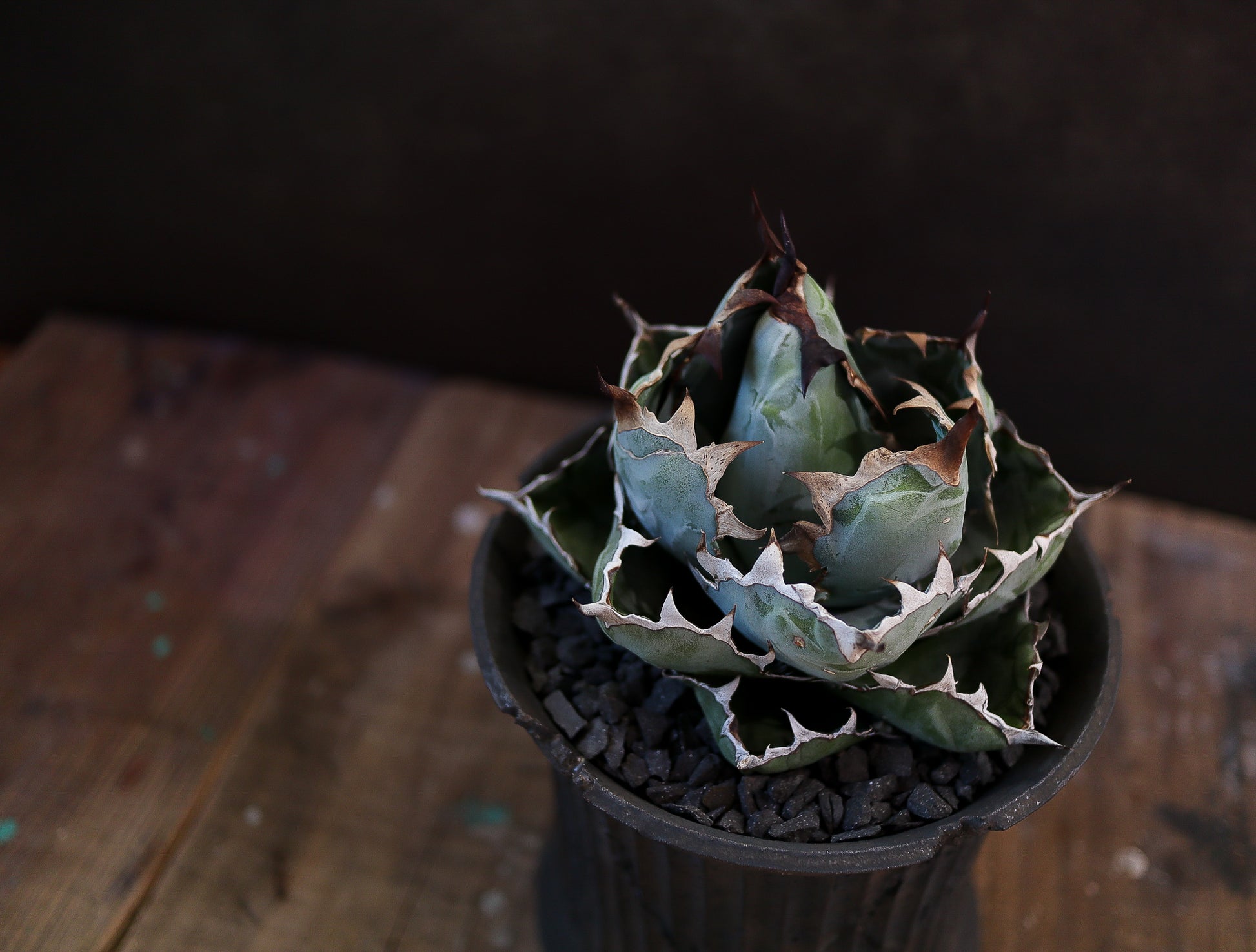ブルーグリーンの肌と白い⊿型の鋸歯のコントラストが美しいアガベです。